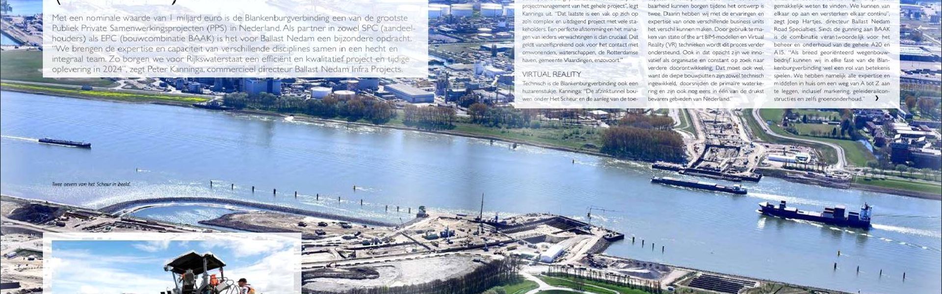 Met een nominale waarde van 1 miljard euro is de Blankenburgverbinding een van de grootste Publiek Private Samenwerkingsprojecten (PPS) in Nederland. Als partner in zowel SPC (aandeelhouders) als EPC (bouwcombinatie BAAK) is het voor Ballast Nedam een bijzondere opdracht.
